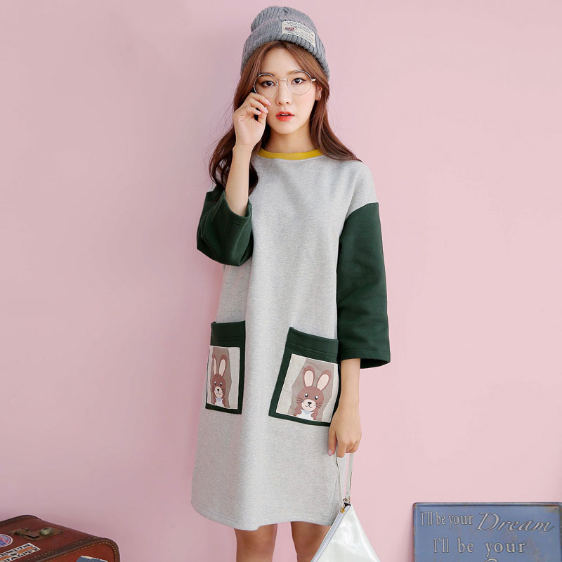 韩都衣舍2016新款秋冬款长袖连衣裙宽松学生冬季内搭打底裙子韩版 领券下单立减/单件包邮/先拍先发货!